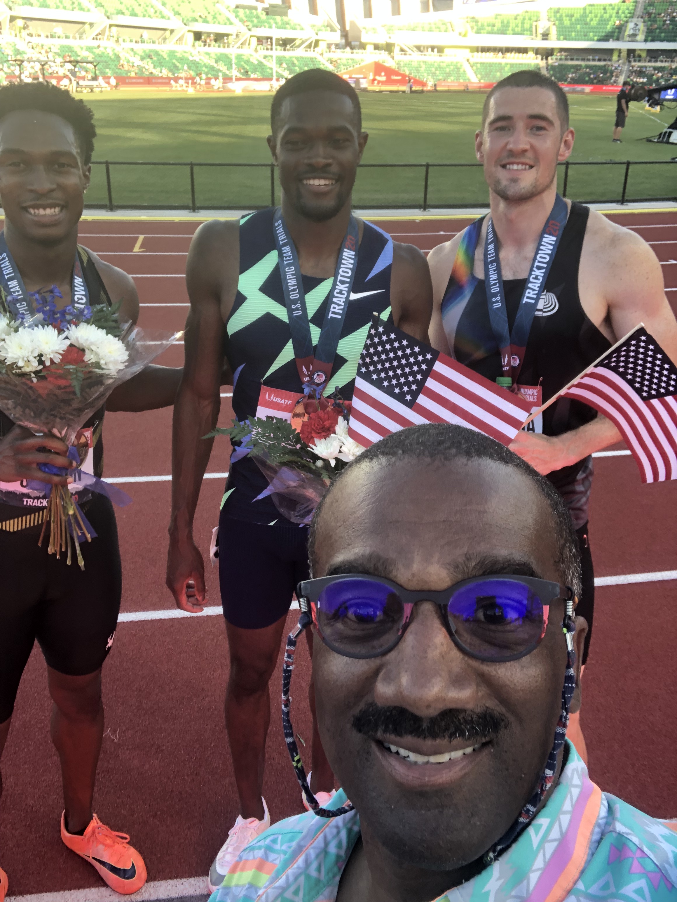 I retired from the Anchorage Police Department with over 21 years of service, finishing up my career as a School Resource Officer (SRO). I am an avid track fan, see photos below [2021 Olympic Track and Field Trials]. During my time as an SRO, I coached sprinters for 13 years at Service High School. These young athletes graduated from Service and their achievements after graduation have been amazing. Obtaining college degrees, graduate level degrees, and starting their own business.